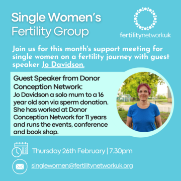 For more information and log in details please email singlewomen@fertilitynetworkuk.org