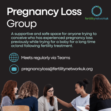 For further information and details on how to join the monthly meetings, please contact pregnancyloss@fertilitynetworkuk.org